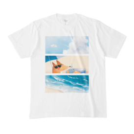 Tシャツ - XL - 白この商品はpixivFACTORYで作られた商品です。サンプル画像は完成イメージのため、実物と異なる場合があります。 前面にイラストが描かれているTシャツです。 少し変なTシャツを求めている方、胸元でキツネの夏を堪能したい方にオススメです。