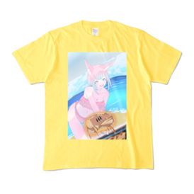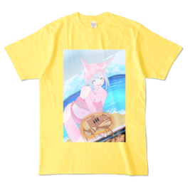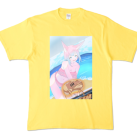 カラーTシャツ - XL - イエロー (濃色)イラストレーターLa+がデザインしたステーキをあげる人狼ちゃん半袖Tシャツ(黄)です。 この商品はpixivFACTORYで作られた商品です。サンプル画像は完成イメージのため、実物と異なる場合があります。