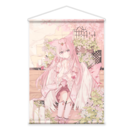 Size:B2 花がいっぱいの中でベンチに座る桜狐フェネのとっても可愛らしいイラストだよ🌸 優しい色と雰囲気で見てるだけで和めるかも? B2サイズで存在感もバッチリ!✨ 🌟イラスト:くしだ様