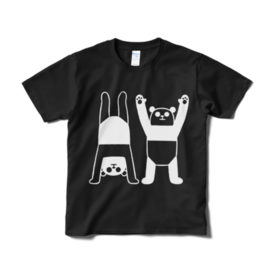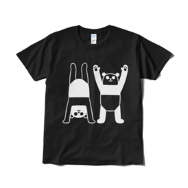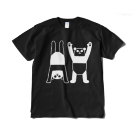 バンザイパンダと逆立ちパンダ【Tシャツ(短納期)ブラック】
