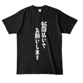 XL46回払いで購入したい時にピッタリの黒Tシャツ。 ※この商品はpixivFACTORYで作られた商品です。サンプル画像は完成イメージのため、実物と異なる場合があります。