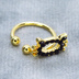 ゴールドカラー 猫フェイスモチーフのかわいいイヤーカフ(左耳用) ラインストーン(ブラック)