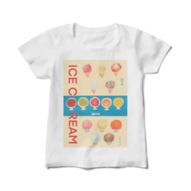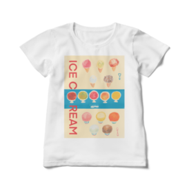 レディースTシャツ - M - 白アイスクリームとかき氷のTシャツです。 涼しくなぁれ(念) こちらはレディース用になります。 この商品はpixivFACTORYで作られた商品です。サンプル画像は完成イメージのため、実物と異なる場合があります。