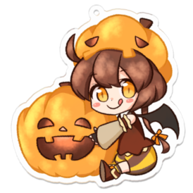 アクリルキーホルダー - 70 x 70 (mm)この商品はpixivFACTORYで作られた商品です。サンプル画像は完成イメージのため、実物と異なる場合があります。 創作カボチャのパフィーのアクリルキーホルダー。70×70サイズです。