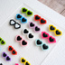 ※こちらは小さいサイズの商品ページです。大きいサイズはこちら→https://sunagimo24.booth.pm/items/4018314※ 🌞ハッピーバケーションサングラス😎🌴 もちもちマスコット ミニなど小さなぬいぐるみ用のサングラス型のマグネット式アクセサリーです。 小さなお顔に似合うようにかなり小さなマグネットを使用しています。マグネットは3ミリ幅とかなり小さいため、紛失・誤飲にはくれぐれもお気をつけください。 【使い方】 ぬいの髪の毛やお洋服の生地をマグネットではさんで使用します。 付け方は大きいサイズの商品ページの「マグネット式アクセサリーの付け方」を参考にしてください。 大きいサイズはこちら:https://sunagimo24.booth.pm/items/4018314/ 【大きさ】 横幅 約3cm 縦 約1.3cm 【使う時の注意】 ぬいの髪にマグネット跡が残ってしまったり、生地を傷めたりしないよう、比較的着脱しやすいマグネットを使用しています。(逆さまにしても取れたりはしない強さはあります)。 紛失をふせぐため、移動の際は別のケースに入れて持ち運び、撮影の間だけぬいにつけてあげるのがおすすめです。 ただし、長時間の着用はぬいにマグネット跡が残ってしまう可能性があります。使用後はかならず外してあげてください。 【発送方法】 普通郵便で発送します。 送料は梱包費用を含みます。 追跡あり・匿名配送をご希望の場合はこちら(https://sunagimo24.booth.pm/items/4018670)のオプションをあわせてカートに入れて下さい。 【購入前の注意事項】 小さな気泡が入っている場合があります。 裏面がボコボコしている場合があります。 趣味で製作しているハンドメイド作品です。 既製品のような緻密さはありませんので、ご心配な方は購入をお控え下さい。