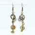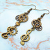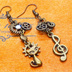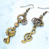 アンティークゴールド スチームパンク風の猫と音符のアシンメトリーピアス ラインストーン ハート