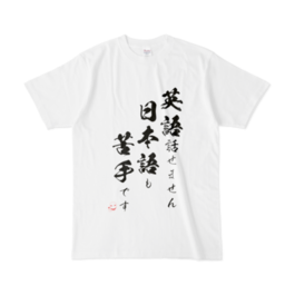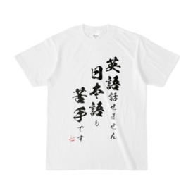 この商品は,Tシャツの正面に【英語話せません 日本語も苦手です】の文字と【スマイルマスクの小さな赤ロゴ】がデザインされた文字Tシャツです。 スマイルマスクのロゴは,当方がSNSなどのアイコンで使用しているオリジナルキャラクターです。 SNSで絡みが少ない人も,当方を全く知らないFF外の人も,デザインを気に入っていただけたら,お気軽にご購入いただけると大変嬉しいです。 *FF外:SNS上でお互いにフォローをしていない状態のこと この商品は「pixivFACTORY」で制作された商品です。 サンプル画像は完成イメージのため,実物と異なる場合があります。 また,当商品は受注生産のため生産から出荷まで「お支払日〜約2週間ほど」お時間を頂戴しております。 自然災害を含むトラブルが発生した場合は,更にお時間を頂戴する場合もございます。 あらかじめご了承くださいませ。
