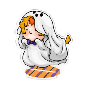 アクリルフィギュア - 160x160mmこじし座さんのハロウィンの仮装ver(ゴースト)のアクリルスタンドフィギュアです。 サイズ…50×50、70×70、100×100、160×160の四つがあります。 この商品はpixivFACTORYで作られた商品です。 ※サンプル画像は完成イメージのため、実物と異なる場合があります。 (実際の色味はデータより暗く印刷されます。)