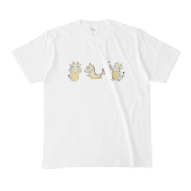 まめ龍のTシャツだよ。 結構可愛くできた気がするよ。 着たら元気になること間違いなし! まめ龍×3がハートに近い所で寄り添ってくれてるよ♪ この商品はpixivFACTORYで作られた商品です。サンプル画像は完成イメージのため、実物と異なる場合があります。