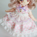 【オビツ11 ・ピコP】ミニエプロン付きワンピース(ピンク×パープル)