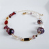 スクエアのフレームストーンとガーネットと淡水パールとしずくととんぼ玉ビーズのグラデーション風ブレスレット