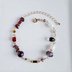 小さめサイズながら存在感たっぷりのスクエア型のフレームストーンを真ん中に配置し、その片方側には大人っぽい赤紫色が素敵なガーネットのミニチップにステラパールやオーバルフープなどを、もう片方側には上品な淡水パールと存在感たっぷりのマーブル模様のとんぼ玉ビーズにぷっくり可愛いしずくビーズやガラスビーズなどを合わせた2種類のデザインをくっつけたユニークデザインがお洒落なブレスレットとなっております☺ メインのお色は煌びやかな上品さを感じるパープル色、ゴールド金具と合わせてゴージャスで落ち着いた色合いでまとめました☺ ひとつのブレスレットで2つのデザインを同時にお楽しみ頂ける斬新なデザインに仕上げました☆ 天然石がお好きな方にはもちろん、赤紫やパープル色がお好きな方に特におすすめの作品となっております☺ *1月の誕生石であるガーネットは実りの象徴とされ、目標に向かいコツコツと取り組んできた努力の成果を実らせて成功に導いてくれると言われています。 どんな困難や大きな課題を前にしても忍耐力を与え、前向きに取り組めるよう後押ししてくれる石としても知られています。 また大切な人との愛情を深める一途な愛を象徴する石としても知られています。 ガーネットは他にも… *信頼と愛 *血液の流れを良くする *マイナスエネルギ―からの守護 などの効果もあると言われています。 *淡水パールの色合いは女性の肌に良く馴染みに高貴さを与えてくれると言われています。美しさや高貴さには低次元のものや不純なものを寄せ付けない強さが宿ると言われていることからお守りとして身に着けるのも良いと思います☺ 淡水パールは他にも… *心や生活に余裕を作る *エネルギーを奪うものから守る *感情を受け取り、昇華させる *持久力や忍耐力を養う などの効果もあると言われています。 ※天然石には石によって割れやすいものや、キズなどがついているものが御座います。 出来るだけ作品に使用する石は綺麗なものを選んでおりますが、まれにキズやインクルージョンが含まれているものがございます。 予めご了承頂けます様にお願いいたします。 ※こんな方におすすめ♪ *大切な方へのプレゼントに *ユニークなデザインのブレスレットがお好きな方に *ガーネットや淡水パール、とんぼ玉ビーズがお好きな方に *グラデーションのような色合いがお好きな方に ☆アクリルフレームストーン ブラック×ゴールド 約4x12mm ☆とんぼ玉ビーズ クリアパープル×パープルマーブル ボタンカット 10mm ☆しずく型チェコビーズ ドリーム オパール 9x6mm ☆しずく型チェコビーズ オパールホワイト 7×5㎜ ☆淡水パール(天然石) ライス 5~7cm程 ☆ファイアポリッシュチェコビーズ ピンクパープル 4mm ☆ガラスビーズ ライトパープルオーロラ ボタンカット 4mm ☆ステラパール ボルドー ラウンド型 8mm玉 ☆ガーネット(天然石) ミニチップ 約4~5cm程 ☆ガラスビーズ フルコートゴールド ボタンカット 4mm ☆ガラスビーズ レッド ボタンカット 4mm ☆ファイアポリッシュチェコビーズ カーマイン 6mm ☆ガラスビーズ ミルクベージュ コインカット 4mm ☆オーバルフープ ゴールド ☆メタルビーズ ゴールド ☆スペーサー ゴールド ☆9ピン ☆丸カン ☆アジャスター ☆カニカン 長さは約22cmとなっております。(5cm程のアジャスターを含む)