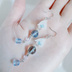 すりガラス風のホワイト色の可愛いすずらんビーズをメインに幻想的なラブラドライト色のルナフラッシュやライトサファイア色のファイアポリッシュチェコビーズなどが揺れるお洒落なピアス/イヤリングとなっております☺ メインのお色は空と雲をイメージしたブルーとホワイト色の2色、シルバー金具と合わせて爽やかで涼しげな色合いでまとめました☆ ホワイトやブルー色などがお好きな方にはもちろん、揺れるタイプの作品やすずらんモチーフの作品がお好きな方にもおすすめの作品となっております☆ 落ち着いたクールな色合いが耳元を更に魅力的に魅せてくれると思います。 ルナフラッシュは特殊加工された半球を繋ぎ合わせて人工石になっております。 見る角度や光の当たり具合によってまるでオーロラの様に色々な顔を魅せてくれます。ご着用されている方も見ている方も両方ともお楽しみ頂ける作品になっております☺ アレルギー対応のピアスやイヤリング金具への変更についてはご注文時にオプションよりご希望金具をお選び下さい。 ※こんな方におすすめ♪ *大切な方へのプレゼントに *すずらんモチーフがお好きな方に *ブルーやホワイト色がお好きな方に *可愛いデザインの作品がお好きな方に ☆すずらんのアクリルビーズ すりガラス風 ホワイト 約8.5x10mm ☆ルナフラッシュ ラブラドライト 8mm ☆ファイアポリッシュチェコビーズ ライトサファイア 6mm ☆ガラスビーズ アラバスターライトブルー ボタンカット 4mm ☆ファイアポリッシュチェコビーズ タンザナイト 4mm ☆座金 シルバー ☆スペンサー シルバー ☆メタルビーズ シルバー ☆9ピン ☆Tピン ☆丸カン ☆ピアス用金具(フック式☆シルバー) 長さは約6cmとなっております。(約1cm程のピアス金具を含む)