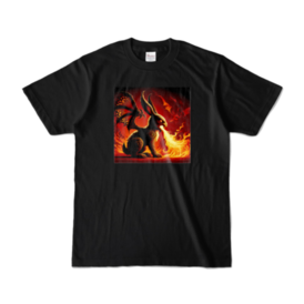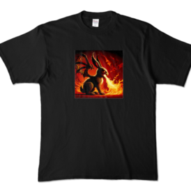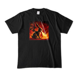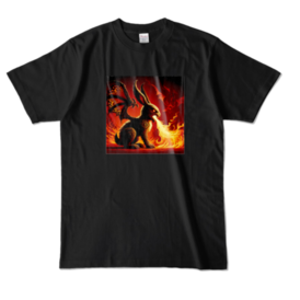 カラーTシャツ - XL - ブラック (濃色)まるで異次元からやってきたかのように真っ赤な炎を吐き出している姿!この悪魔のようなうさぎは、単なるかわいさを超えた強烈な魅力で観る者を魅了します。 この商品はpixivFACTORYで作られた商品です。サンプル画像は完成イメージのため、実物と異なる場合があります。