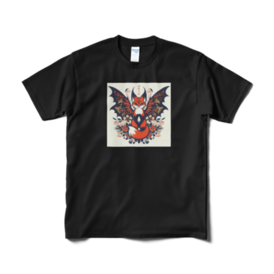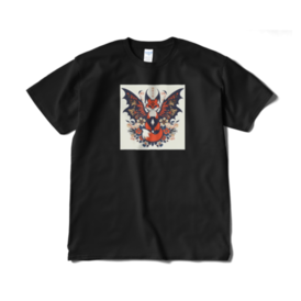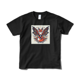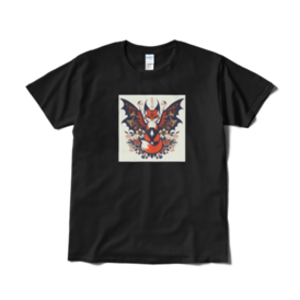 Tシャツ(短納期) - XL - ブラックこの「きつねコウモリさま 2」は、見る者の心をすぐに掴む魅力たっぷりのキャラクターです!キュートなキツネと愛らしいコウモリが見事に融合した、癒しの存在感。ふわふわの毛並みや、きょとんとした目がたまらなく愛おしい!このファンタジーな生き物は、まるで夢の世界から飛び出してきたかのよう。 この商品はpixivFACTORYで作られた商品です。サンプル画像は完成イメージのため、実物と異なる場合があります。