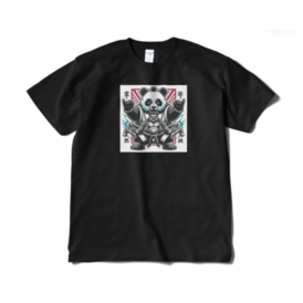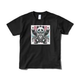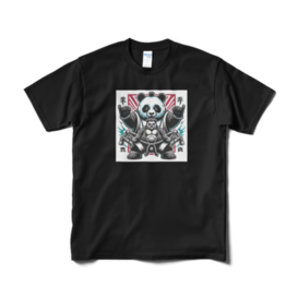 Tシャツ(短納期) - XL - ブラック「横綱パンダ山が土俵入りする姿は、まるで夢のような愛らしさ!ふわふわの毛並みと丸いフォルム、そして堂々たる立ち振る舞いが、すべてのファンを魅了します。 この商品はpixivFACTORYで作られた商品です。サンプル画像は完成イメージのため、実物と異なる場合があります。