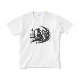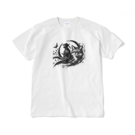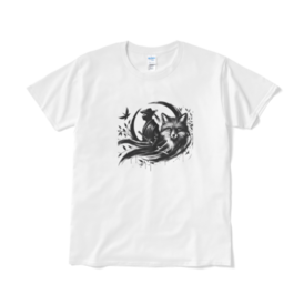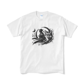 Tシャツ(短納期) - XL - ホワイト魅力的な忍者と神秘的なキツネが織りなす、目を引くコラボレーション!忍者の鋭い眼差しと、キツネの優美な姿がリズミカルに融合し、まるで日本の伝説から飛び出してきたかのよう。 この商品はpixivFACTORYで作られた商品です。サンプル画像は完成イメージのため、実物と異なる場合があります。