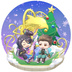 雪景色のバンガードの中にいるシィレイとダリアスのスノードーム風キーホルダー