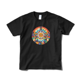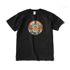 Tシャツ(短納期) - XL - ブラックイメージには、明るい太陽の光がこぼれ、人々が手を取り合い、希望を象徴する温かさが感じられます。太陽は新たな始まりやエネルギーをもたらし、そのまぶしい光は目の前に広がる可能性を示しています。 この商品はpixivFACTORYで作られた商品です。サンプル画像は完成イメージのため、実物と異なる場合があります。