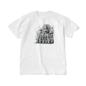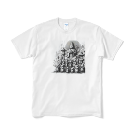 Tシャツ(短納期) - XL - ホワイトかわいらしい「うさぎ地蔵さま」は、心温まる魅力にあふれています。この愛らしい地蔵様は、お釈迦様の優しさを思わせる存在で、小さなうさぎの姿をしています。 この商品はpixivFACTORYで作られた商品です。サンプル画像は完成イメージのため、実物と異なる場合があります。