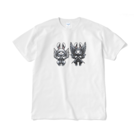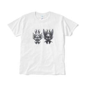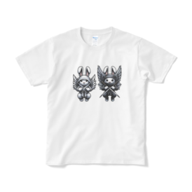 Tシャツ(短納期) - XL - ホワイトおっと、見てください!この愛らしい双子の忍者うさぎたち。小さな身体に身を包んだカラフルな忍者服がとってもキュートで、ふわふわの耳がピョンピョンと揺れています。 この商品はpixivFACTORYで作られた商品です。サンプル画像は完成イメージのため、実物と異なる場合があります。