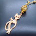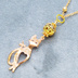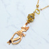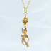 ラメ入りマットゴールドのスマートな猫シルエットモチーフとメタルビーズ(ゴールド)のペンダントネックレス 長さ調整可