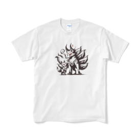 Tシャツ(短納期) - XL - ホワイトこの魅力的な一枚は、愛らしいキツネの親子がハードモードで挑戦する姿を描いています。 この商品はpixivFACTORYで作られた商品です。サンプル画像は完成イメージのため、実物と異なる場合があります。