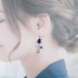 ちょこんとお座りをしている小さめサイズのうさぎちゃんチャームに吸い込まれそうな深い青色が素敵なラピスラズリのミニタンブルを2色のぷっくり可愛いしずくビーズを合わせたユニークでお洒落な揺れるタイプのピアス/イヤリングとなっております☆ メインのお色は静粛な真夜中をイメージした深いブルー色、シルバー色のうさぎちゃんを合わせて涼しげで落ち着いた色合いでまとめました☺ さりげなく合わせたぷっくりしずくビーズがアクセントになったちょっぴりユニークなデザインに仕上げました。 アレルギー対応のピアスやイヤリングへの変更についてはご注文時にオプションよりご希望金具をお選び下さい。 *9月と12月の誕生石としても知られるラピスラズリは「幸運を招く石」といわれ、邪気を退け、正しい判断力を高め、最高の幸運を呼び寄せてくれる石として知られています。 ただ目先の結果にこだわらず、持ち主にとって正しい方向へ導いてくれるでしょう。たとえば、これまでよしとしていた考え方が、自分の成長を支えるだけの効力を失ってしまったときに古い考え方を取り去り、より高いレベルへ成長できるように知性を磨いてくれるといいます。 直感力を高め、納得のいかない現状を改善する効果もあるといわれています。また、疲れていたり、気力がないときに身につけることで、生き生きとしたエネルギーをチャージしてくれるでしょう。あらゆる強運を呼び寄せるラピスラズリは、持ち主に災いが迫っているときや健康を害しているとき、色を曇らせて知らせる効果があるといわれています。 ラピスラズリは他にも… とにかく幸運を呼び込みたい 直観力と判断力を高めたい 夢や目標を達成したい ネガティブな気持ちを追い払いたい 不運が続いている 眠っている才能を開花させたい とにかく精神的に成長したい などの効果があるとされています。 ※こんな方におすすめ♪ *大切な方へのプレゼントに *涼しげなお色がお好きな方に *ラピスラズリがお好きな方に *うさぎちゃんとしずくモチーフがお好きな方に ☆ラピスラズリAA++(天然石) ミニタンブル 約6~7cm程 ☆しずく型チェコビーズ ナイトフォール 9x6mm ☆しずく型チェコビーズ ハッピーアワーナイト コンビマット 9x6mm ☆ミニうさぎチャーム シルバー 約4.5×11mm ☆9ピン ☆丸カン ☆ピアス用金具(フック式☆シルバー) 長さは約5cmとなっております。(1cm程のピアス金具を含む)