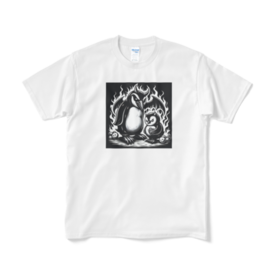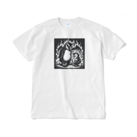 Tシャツ(短納期) - XL - ホワイトこのユニークな光景に心を奪われます!凶悪そうな表情を浮かべる親ペンギンと、その可愛らしい子ペンギンのコンビは、意外なほど魅力的。 この商品はpixivFACTORYで作られた商品です。サンプル画像は完成イメージのため、実物と異なる場合があります。