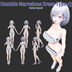 ■Overview HumbleMarvelousDress(ハンブルマーベラスドレス略してH.M.D.)の3Dモデルです。 ヘッドマウントディスプレイとそのコントローラーをイメージした服です。 VRChat等での使用を想定しています。 Q3タイプはトップスのストラップおよびパッドのカラーバリエーション3色(黒、青、オレンジ)をエクスプレッションメニューで変更できます。 ブレンドシェイプでトップスストラップの胸囲、ボトムスストラップのウエスト、ブレスレットのサイズおよび股下ストラップの細さを調整できるようになっています。 LiltoonとModular Avatarを導入したunityプロジェクトのヒエラルキのアバターの直下にPrefabを置いてください。 【※】マヌカちゃん対応版はエクスプレッションメニューのバストサイズが優先されるためバストサイズを100%にしてお使いください 【※】りりかちゃん対応版はアバターの胸ボーンサイズを変更してお使いください(画像、付属サンプルPrefab、Readme参照) This is the 3D model of the HumbleMarvelousDress (abbreviated as H.M.D.) . The outfit is inspired by two head-mounted displays and their controllers. It is designed for use in VRChat and similar platforms. Three color variations (black, blue, and orange) for straps and pads of the Tops can be changed in the expression menu. Although not required for KIKYO-chan, the blend shapes allow you to adjust the bust circumference of the top straps, the waist of the bottom straps, the size of the bracelets and the thinness of the crotch straps. Place the Prefab in the hierarchy of Aavatar in the unity project that has Liltoon and Modular Avatar installed. [*]Please use Manuka-chan with the standard expression menu set to 100% Breast size. [*]Please use Ririka-chan requires you to change the avatar's chest bone size before use (see the sample Prefab and Readme). ■Contents 以下を含むUnityPackage形式ファイル トップス(Q3、Q3S) ボトムス(Q2) ブレスレット(Q2コントローラー) ブーツ(Q3コントローラー) ポリゴン数 合計 約7,000 The following UnityPackage format file. Tops(Q3,Q3S) Botoms(Q2) Bracelet(controller of Q2) Boots(controller of Q3) Tris. Total about 7,000 ポンデロニウム研究所 様 オリジナル3Dモデル「桔梗」 KIKYO https://booth.pm/ja/items/3681787 VIVID PLUM 様 『白雨-Hakuu-』オリジナル3Dモデル https://booth.pm/ja/items/6211186 STUDIO JINGO 様 オリジナル3Dモデル「マヌカ」 https://booth.pm/ja/items/5058077 IKUSIA 様 オリジナル3Dモデル「真央」-mao- https://booth.pm/ja/items/6846646 オリジナル3Dモデル「りりか」-ririka- https://booth.pm/ja/items/6373683 オリジナル3Dモデル「瑞希」 -mizuki- https://booth.pm/ja/items/5132797 サメっ子オリジナル3Dモデル「rurune」-ルルネ- https://booth.pm/ja/items/5957830