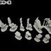 全長8cm程度のビークル型キット等に適したサイズの強化パーツセットです。 画像を参考にカスタムパーツとしてご利用下さい。 他の商品とあわせて、1回の発送でまとめてご購入いただけます。 【内容一覧】 スタブウィング基部×2 スタブウィング基部(簡易型)×2 スタブウィング×2 着陸用スキッド×2 武器・基部パーツ×2 【制作にあたっての注意点】 本商品は3DプリンターによるUVレジン製の出力品となるため、以下の点にご注意下さい。 1. 購入者様ご自身で調整加工、組み立て、塗装をしていただくキットとなります。 サポート材が付いた状態での発送となりますので、ニッパー、ナイフ、ヤスリ等で切り出し、表面や軸、穴の太さ等を必要に応じて整えて下さい。 出力品はプラスチックに比べ欠けやすいため、力任せにサポート材を切り離すと本体側が欠けてしまうことがあります。 本体から1~2mm程度離れた部分をニッパーで切り出し、ナイフやヤスリで整える等慎重な作業を心がけて下さい。 同梱のテスト用端材で、切り出しの練習や強度確認を行うことをお勧めします。 2. 出力品には必ず積層痕が発生するため、気になる箇所はヤスリ等で表面処理を行って下さい。 3. 出力品をプリンターから取り外す際にサポート材底面が割れる場合がありますが、パーツ本体に問題がない限り、そのままとしております。 また、レジンの色味や濃淡はレジンの在庫状況により写真と異なる場合があります。 4. パーツ全体の完全な二次硬化に心がけておりますが、奥まった部分には硬化しきれず、べたつきや匂いが残っている場合があります。気になる場合はUVライトや日光に30分程度当て硬化させて下さい。また、パーツとしての使用に明らかに問題がある場合は対応いたしますので、メッセージ欄にてご連絡下さい。 5. 出力品はプラスチック等に比べ摩耗しやすいため、頻繁な付け外しは推奨いたしませんが、緩くなった場合は軸を太らせる、パーマネントパニッシュ等を用いる等により補修して下さい。 6. 塗装は模型用塗料で行うことができます。 ラッカー塗料を筆塗りした場合、表面処理を行わない状態では、全力で爪を立てると剥がれますが普通に触って遊ぶ程度では問題ありません。 表面を400番程度の紙ヤスリで荒らしてから塗装すると、爪を立ててもなかなか剥がれない強度が得られます。 7.出力品に対して大きな負荷をかける、水分に触れる又は極端に湿度の高い状態に長時間置く等は変形や破損の原因となります。 特に、出力品に対して軸を差し込む場合はキツすぎると割れやすいため、余裕ある調整を行って下さい。また、材料の特性として経年劣化によりひび割れ等が発生する場合があります。 到着後、パーツの不足、破損等の不備がございました場合は、 取引ページのメッセージ機能にてお問い合わせをお願いいたします。