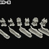 全長8cm程度のビークル型キット等に適したサイズの強化パーツセットです。 画像を参考にカスタムパーツとしてご利用下さい。 他の商品とあわせて、1回の発送でまとめてご購入いただけます。 【内容一覧】 ローターブレード×5 ローター基部(各種)×6 【制作にあたっての注意点】 本商品は3DプリンターによるUVレジン製の出力品となるため、以下の点にご注意下さい。 1. 購入者様ご自身で調整加工、組み立て、塗装をしていただくキットとなります。 サポート材が付いた状態での発送となりますので、ニッパー、ナイフ、ヤスリ等で切り出し、表面や軸、穴の太さ等を必要に応じて整えて下さい。 出力品はプラスチックに比べ欠けやすいため、力任せにサポート材を切り離すと本体側が欠けてしまうことがあります。 本体から1~2mm程度離れた部分をニッパーで切り出し、ナイフやヤスリで整える等慎重な作業を心がけて下さい。 同梱のテスト用端材で、切り出しの練習や強度確認を行うことをお勧めします。 2. 出力品には必ず積層痕が発生するため、気になる箇所はヤスリ等で表面処理を行って下さい。 3. 出力品をプリンターから取り外す際にサポート材底面が割れる場合がありますが、パーツ本体に問題がない限り、そのままとしております。 また、レジンの色味や濃淡はレジンの在庫状況により写真と異なる場合があります。 4. パーツ全体の完全な二次硬化に心がけておりますが、奥まった部分には硬化しきれず、べたつきや匂いが残っている場合があります。気になる場合はUVライトや日光に30分程度当て硬化させて下さい。また、パーツとしての使用に明らかに問題がある場合は対応いたしますので、メッセージ欄にてご連絡下さい。 5. 出力品はプラスチック等に比べ摩耗しやすいため、頻繁な付け外しは推奨いたしませんが、緩くなった場合は軸を太らせる、パーマネントパニッシュ等を用いる等により補修して下さい。 6. 塗装は模型用塗料で行うことができます。 ラッカー塗料を筆塗りした場合、表面処理を行わない状態では、全力で爪を立てると剥がれますが普通に触って遊ぶ程度では問題ありません。 表面を400番程度の紙ヤスリで荒らしてから塗装すると、爪を立ててもなかなか剥がれない強度が得られます。 7.出力品に対して大きな負荷をかける、水分に触れる又は極端に湿度の高い状態に長時間置く等は変形や破損の原因となります。 特に、出力品に対して軸を差し込む場合はキツすぎると割れやすいため、余裕ある調整を行って下さい。また、材料の特性として経年劣化によりひび割れ等が発生する場合があります。 到着後、パーツの不足、破損等の不備がございました場合は、 取引ページのメッセージ機能にてお問い合わせをお願いいたします。