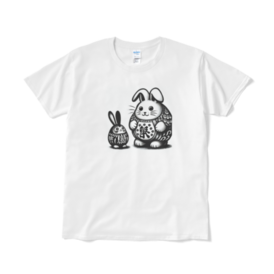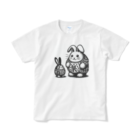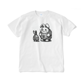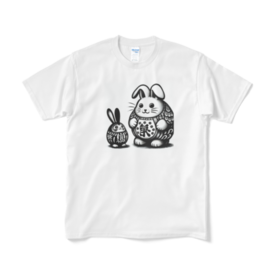 Tシャツ(短納期) - XL - ホワイトふわふわとしたうさぎのデザインが、愛嬌たっぷりのダルマと出会いました。 この商品はpixivFACTORYで作られた商品です。サンプル画像は完成イメージのため、実物と異なる場合があります。