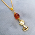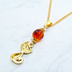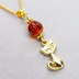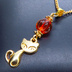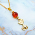マットゴールド 猫モチーフとスカーレットカラーのビーズを組合せたコンパクトなネックレス 長さ調整可