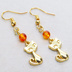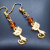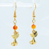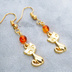 マットゴールド 猫モチーフとスカーレットカラーのビーズを組合せたコンパクトなピアス サージカル可