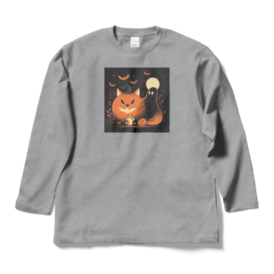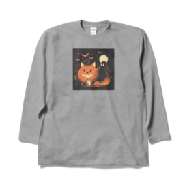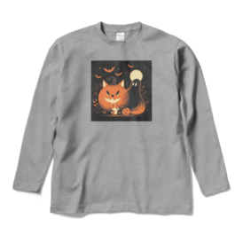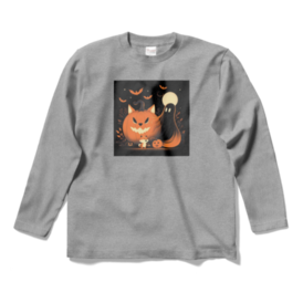 ロングスリーブTシャツ - XL - 杢グレー幻想的なハロウィンの夜に、愛らしいキツネカボチャが不思議な魅力を放っています。 この商品はpixivFACTORYで作られた商品です。サンプル画像は完成イメージのため、実物と異なる場合があります。