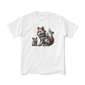 Tシャツ(短納期) - XL - ホワイトカラフルなコスチュームに身を包んだキツネの親子が、まるでおとぎ話から飛び出してきたような可愛らしさです。 この商品はpixivFACTORYで作られた商品です。サンプル画像は完成イメージのため、実物と異なる場合があります。
