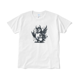 Tシャツ(短納期) - XL - ホワイトユニークで愛らしい悪魔のペンギン親子が描かれた一枚です! この商品はpixivFACTORYで作られた商品です。サンプル画像は完成イメージのため、実物と異なる場合があります。