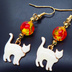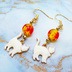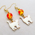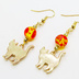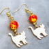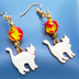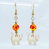 歩き猫シルエットモチーフとオレンジイエロークリアビーズを組合せた大人可愛いピアス マットゴールド エナメル サージカル可