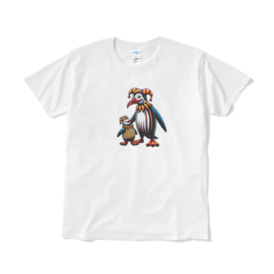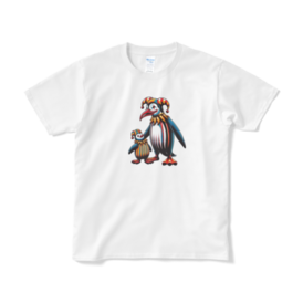 Tシャツ(短納期) - XL - ホワイトピエロに扮したキュートなペンギン親子が登場!愛らしいペンギンたちが柔らかな色合いのコスチュームに身を包み、まるでおとぎ話から飛び出してきたようです。 この商品はpixivFACTORYで作られた商品です。サンプル画像は完成イメージのため、実物と異なる場合があります。