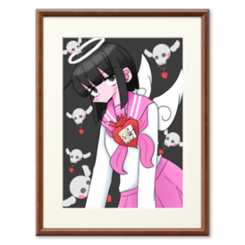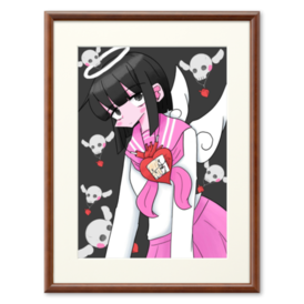 駒天のイラスト販売です! サイズはA4がおすすめとなっています!! 可愛い天使とドクロが自分の好きな魂の曲を聴いているめちゃかわなイラストです!!!黒白ピンクの色が映えてめっちゃ良い!