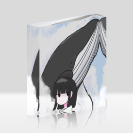 空を泳ぐように飛ぶクジラを描きました。それをアクリルブロックにしてみました!! 迫力がまして綺麗さが増してるそんな1品になってます!!!