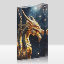 こちらは金の龍が描かれたアクリルブロックです。 透明なアクリル素材に美しいデザインが施され、光の当たり方によって異なる表情を見せます。 デスクや棚、リビングなどに置くだけで、日常の中にパワーを取り入れることができます。 しっかりとした厚みと存在感があり、高級感も兼ね備えています。自分用としてはもちろん、大切な人への贈り物としても喜ばれること間違いなしの一品です。 ーーー サイズ:100 x 148(mm) 背面処理:クリア ーーー この商品はpixivFACTORYで作られた商品です。サンプル画像は完成イメージのため、実物と異なる場合があります。