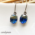 【送料込み】チャイナガラスの青色の1粒シンプルピアス