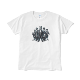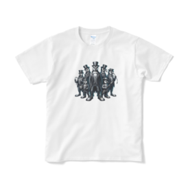 Tシャツ(短納期) - XL - ホワイトここには、優雅に山高帽をかぶったペンギンたちが、まるで紳士のように誇らしげに立っているシーンがあります。 この商品はpixivFACTORYで作られた商品です。サンプル画像は完成イメージのため、実物と異なる場合があります。