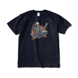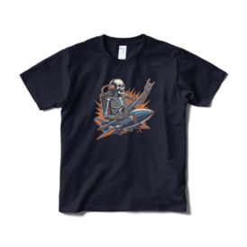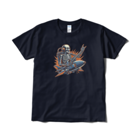 Tシャツ(短納期) - XL - ネイビーキュートでありながら少し不気味!「ガイコツメタル 2」では、個性的なロケット形の楽器を持った不思議な骸骨たちが、パワフルなメタルサウンドを奏でています! この商品はpixivFACTORYで作られた商品です。サンプル画像は完成イメージのため、実物と異なる場合があります。