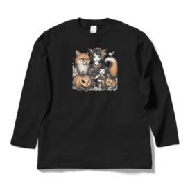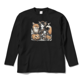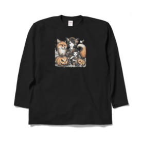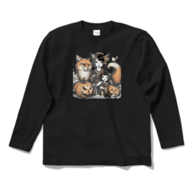 ロングスリーブTシャツ - XL - ブラックふわふわの毛並みを持つ親キツネと、小さな子キツネが並んで歩く姿は、まるで愛らしい絵本の中から飛び出したよう。 この商品はpixivFACTORYで作られた商品です。サンプル画像は完成イメージのため、実物と異なる場合があります。