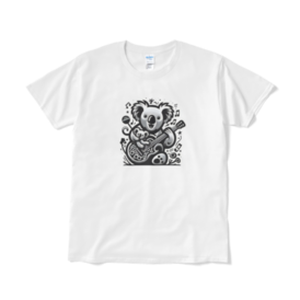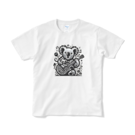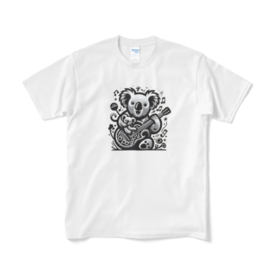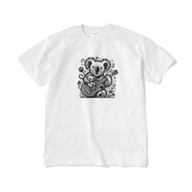Tシャツ(短納期) - XL - ホワイトかわいいコアラの親子が、まるで音楽の魔法にかかったかのようにギターを弾いている姿を捉えた一瞬です。 この商品はpixivFACTORYで作られた商品です。サンプル画像は完成イメージのため、実物と異なる場合があります。