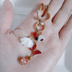 ガラスビーズとシンプルに合わせたホワイト色のフラワータッセル、きらりと輝き人目をさらう赤色のクリスタル蝶コネクターにはジェット色のガラスビーズと和を感じるカラ蔵ビーズを、更にコロンと可愛いすずらんビーズ、それぞれを可愛いウサギの形をしたナスカンに合わせて豪華に仕上げたお洒落なキーホルダーとなっております☺ メインのお色は大人っぽい赤色、ゴールド金具でまとめて妖艶で大人っぽい雰囲気でまとめました☺ キーホルダーとしてはもちろん、ファスナーチャームやバックのサイズによってはバックチャームとしてもご利用頂けます。 ※こんな方におすすめ♪ *大切な方へのプレゼントに *赤色がお好きな方に *ちょっと豪華なキーホルダーがお好きな方に *他とは一味違うユニークで可愛いデザインの作品がお好きな方に ☆クリスタル蝶コネクター 赤 約12×16mm ☆フラワータッセル ホワイト 約18mm ☆唐草ビーズ 赤 ラウンド型 8mm玉 ☆ガラスビーズ ブライトレッド ボタンカット 6mm ☆ガラスビーズ ジェット ラウンド型 4mm玉 ☆ガラスビーズ フルコートゴールド ボタンカット 4mm ☆ガラスビーズ レッド ボタンカット 4mm ☆☆すずらんビーズ オーロラ プラスチック製 約6x10mm ☆座金 ゴールド ☆スペンサー ゴールド ☆メタルビーズ ゴールド ☆9ピン ☆Tピン ☆丸カン ☆うさぎ型ナスカン ゴールド 長さは約8.5cmとなっております。(約3.5cm程のナスカンを含む)