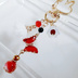 赤色のクリスタル蝶とフラワータッセルとすずらんビーズのお洒落キーホルダー